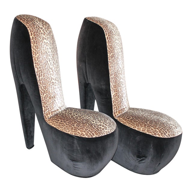 Carved out of solid red oak. Designer armchair with high backrest and bling bling diamante height about 105 cm width about 40 cm depth ca 85 cm color: Child size leopard high heel shoe chair 2021, mayo. You can choose from prints such as leopard, zebra stripes, dalmatian and a wide range of colors from pastel to neon. High heels are a type of shoe in which the heel is significantly higher off the ground compared to the toes.